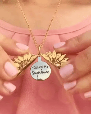 Presentado en una hermosa caja de regalo, este collar es más que una joya, es una experiencia. El girasol guarda un secreto: un mensaje grabado que dice "You are my sunshine".